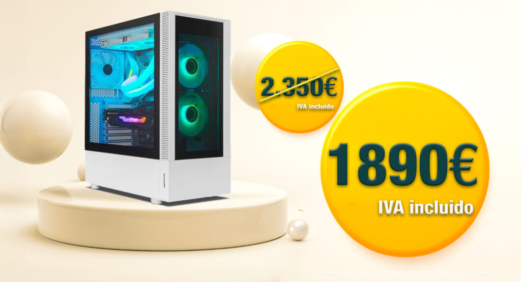 🖥️ Diseño y Dimensiones: Chasis: Semitorre Hummer Nemesis, estructura ATX / Refrigeración: Ventiladores 2 × 12 cm RGB + Refrigeración líquida 240 mm / Peso: Según ensamblaje completo
