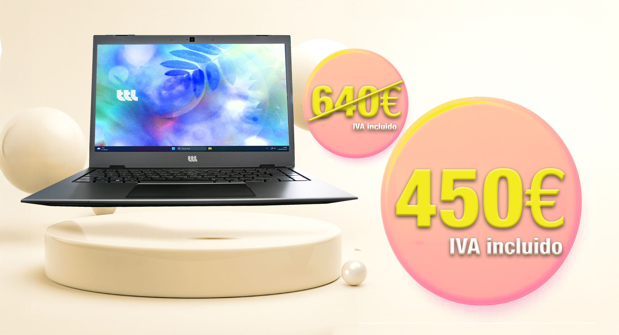 🖥️ Diseño y Dimensiones: Chasis: Aluminio completo, apertura de 180° / Dimensiones: 329 × 230 × 18.1 mm / Peso: 1.7 kg (estimado) / Pantalla: 14.1″ IPS mate, FHD 1920×1080